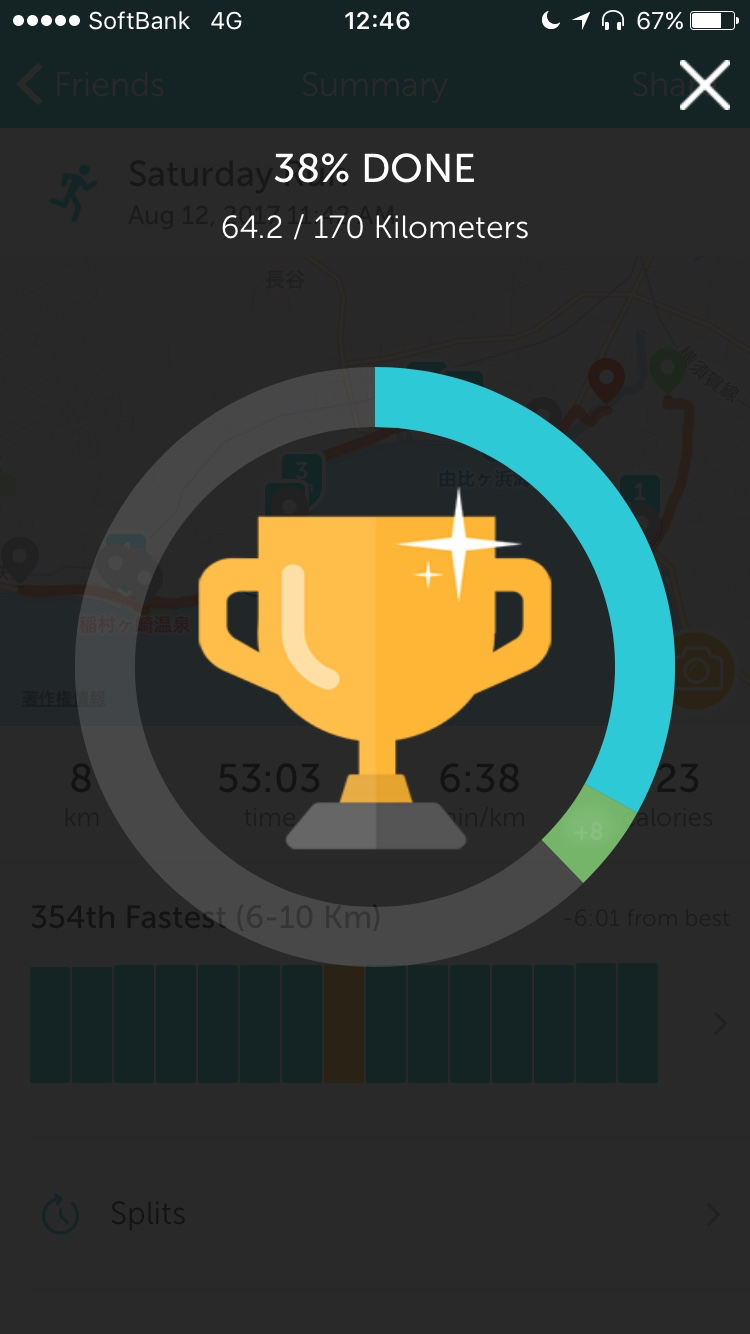 ▲ 8月ここまで64km。