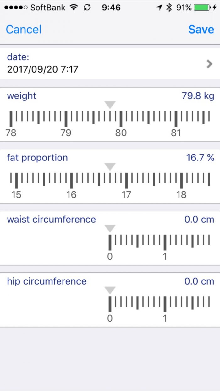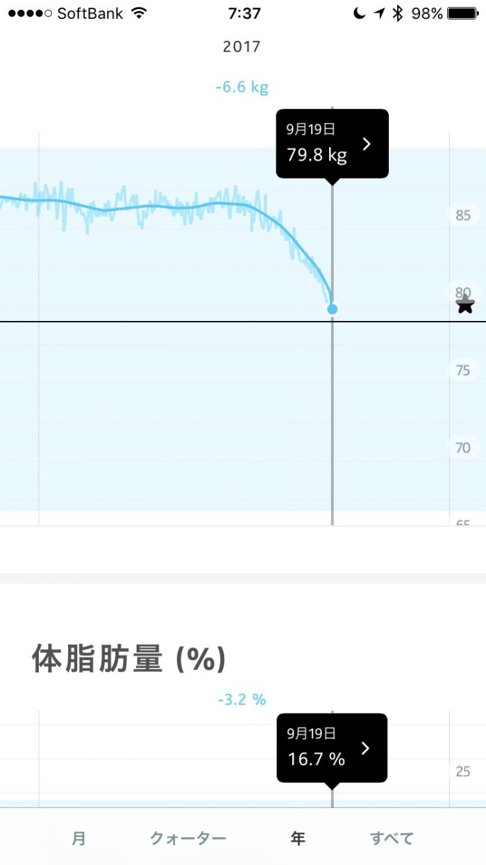 体重79.8kg、体脂肪16.7%