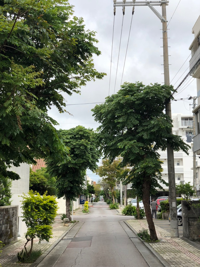 途中路地を見ると、もさもさの街路樹がいかにも沖縄、という感じで嬉しい。