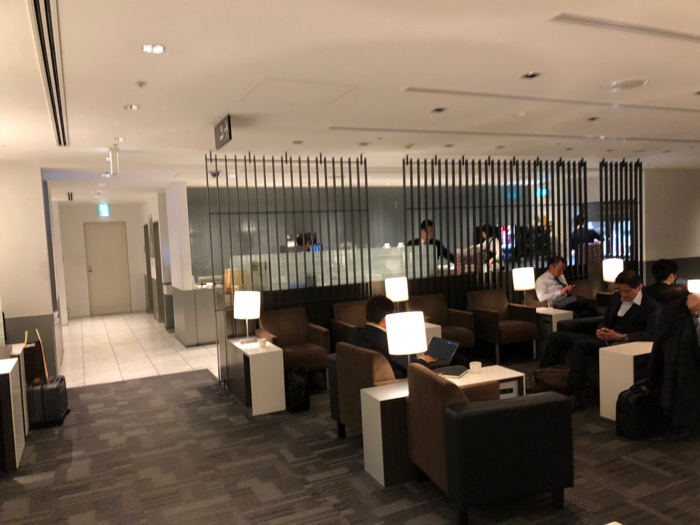 福岡もプレミアムラウンジはビジネスマンの仕事場だった。