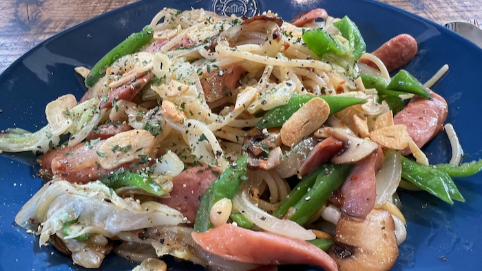昼ごはんにペペロンチーノを作った。