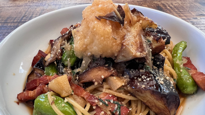 ▲ 昨今の和風パスタブームで、茄子ベーコンの和風パスタを作った。
