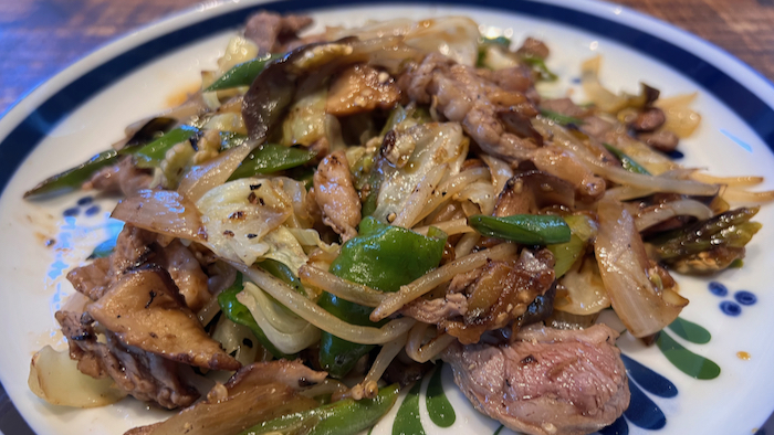 ▲ ラム肉と夏野菜のジンギスカン風炒めが美味しくできた。