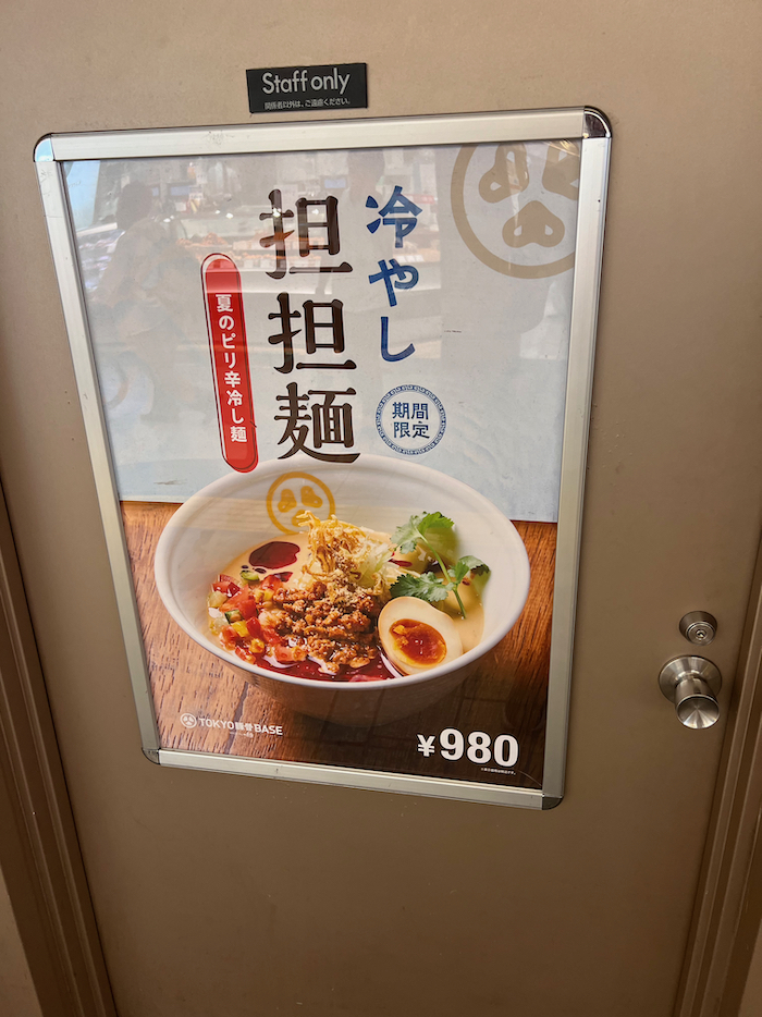 ▲ 大船駅構内にある「TOKYO豚骨BASE MADE by 博多一風堂」の前を通ったら、期間限定の「冷やし担々麺」が始まっていた。