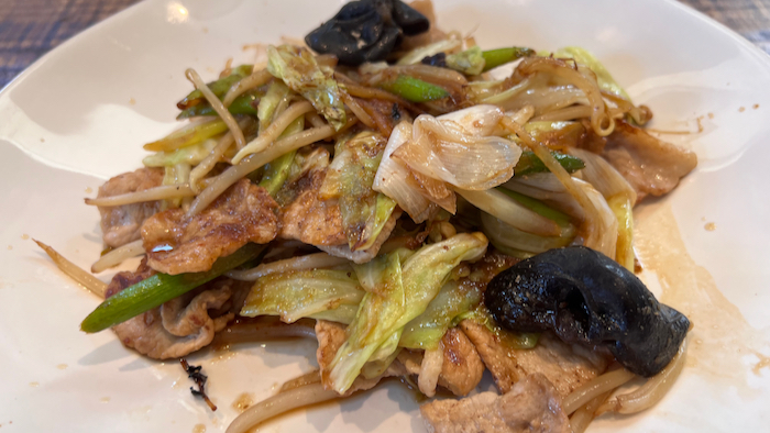 ▲ 豚肉のロース肉の炒め物が美味しくできた。