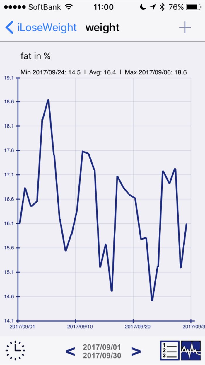 体脂肪:MAX: 18.6、Min: 14.5、平均: 16.4