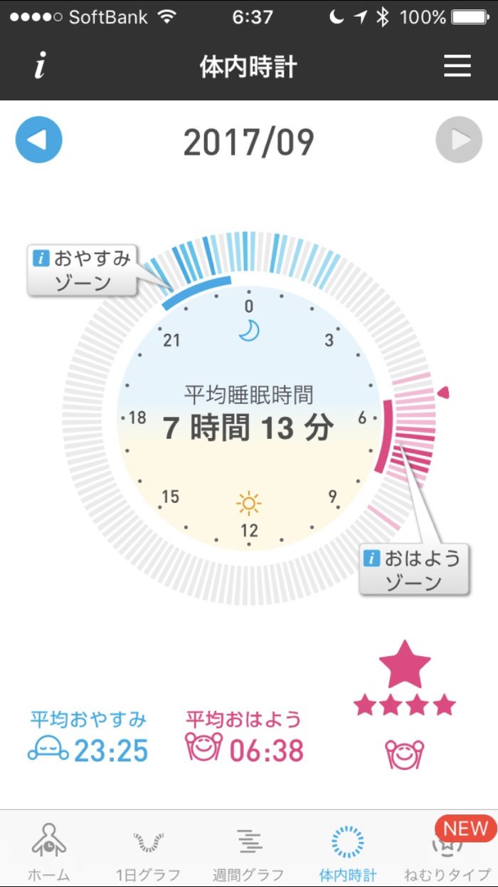 ▲ 睡眠時間は7時間を超えていて文句ないが、就寝、起床が後ろにズレてしまっているのを改善したい。