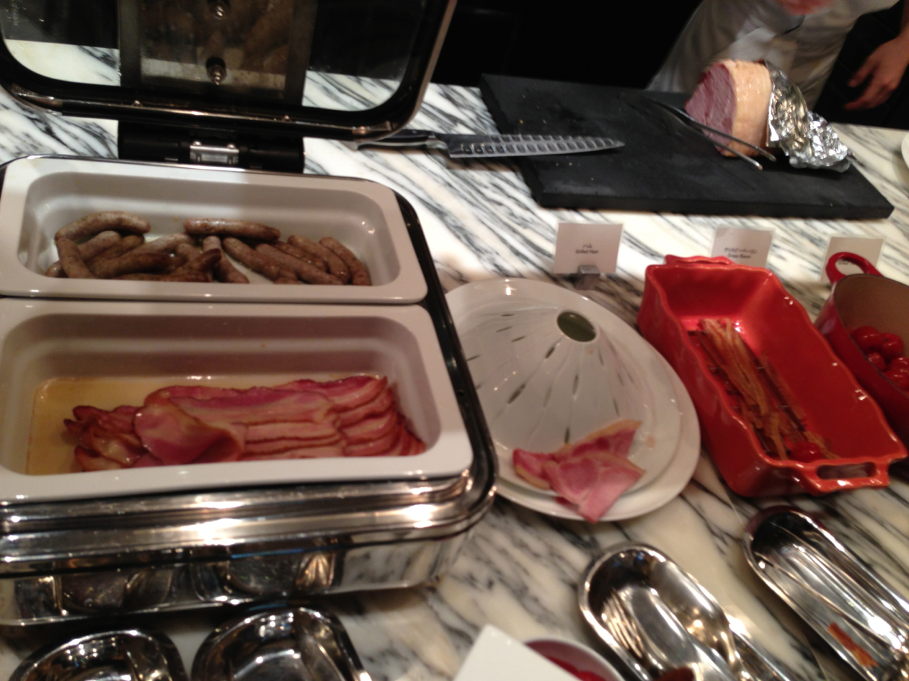 △ お肉コーナーも朝とは思えない充実っぷり。分厚いハムをその場で切ってくれるのにはビックリした。