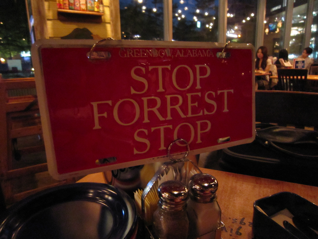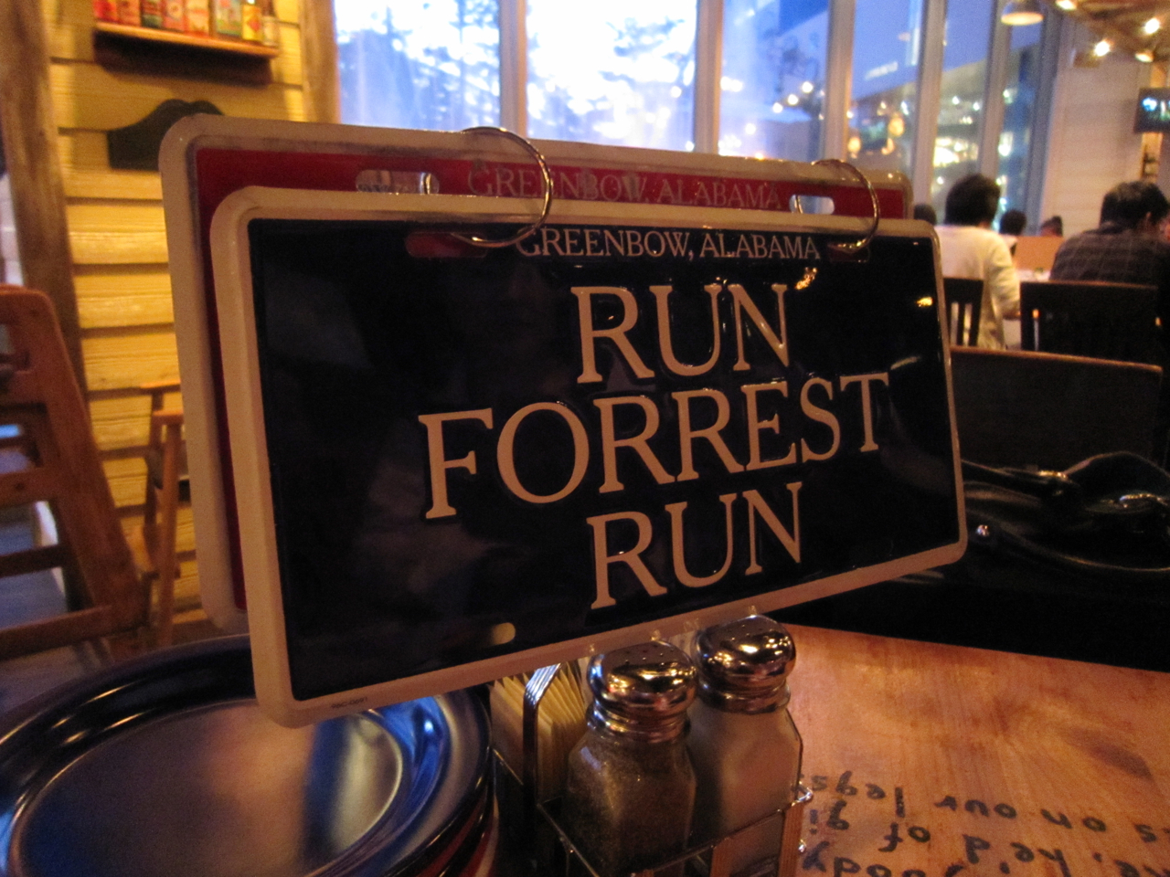 各テーブルに備え付けられているのはブリキの看板。通常はこのように青い看板になっている。