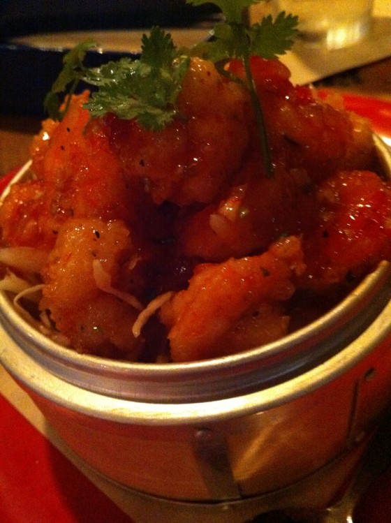 続いてはダイナマイト・シュリンプ。タイ料理に使うスイート・チリソースを絡めたような甘辛い味付け。