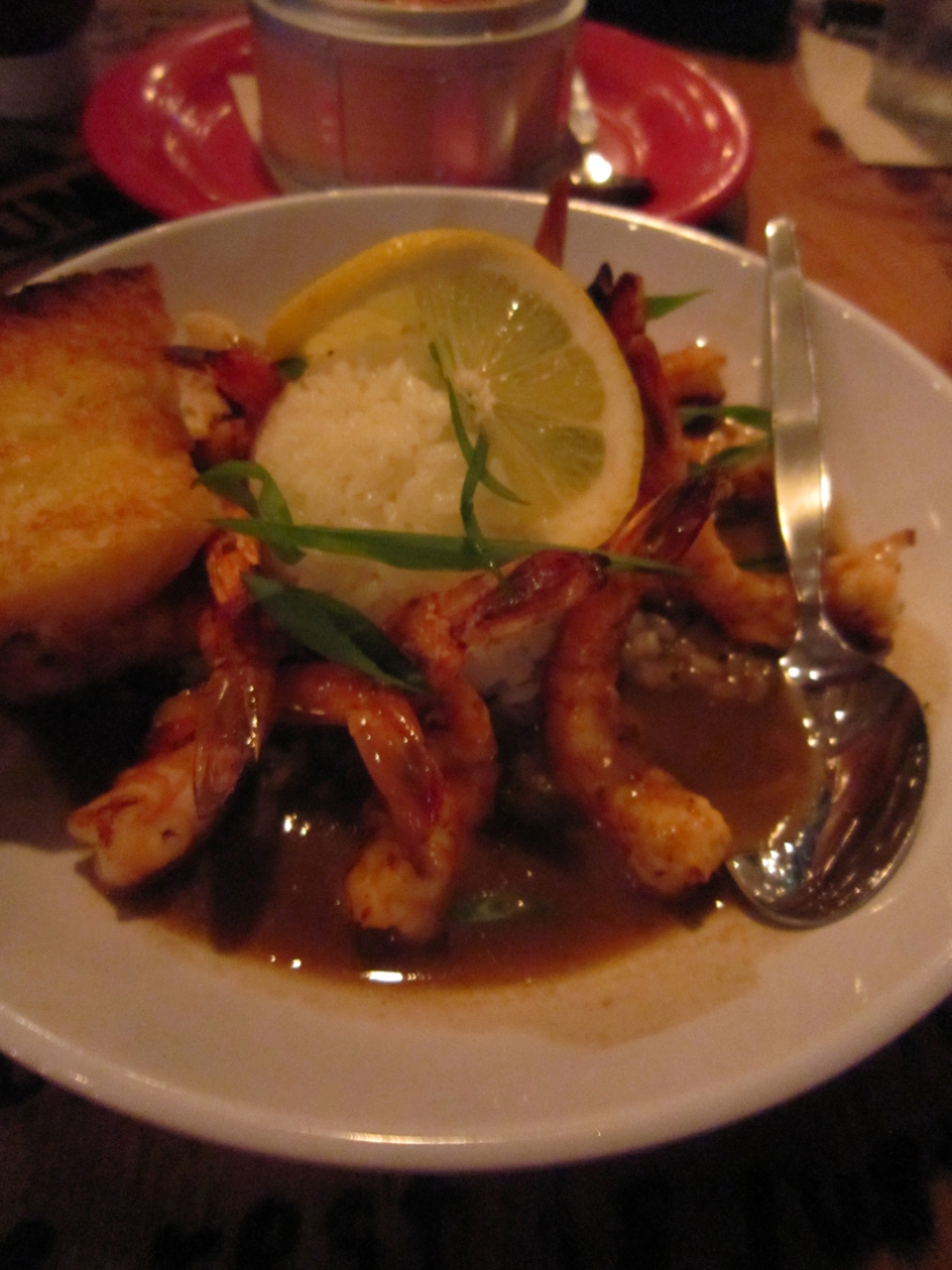 こちらはシュリンプのソテー。バターライスと一緒に頂く。コクのあるソースと酸味のあるソースが二種類かけられていて美味い!