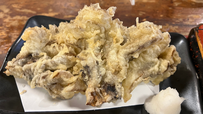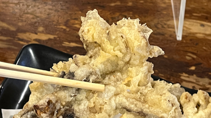▲ 舞茸天は衣が厚めでどっしりしている。