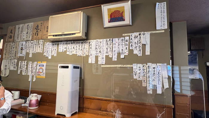 メニューブックはなく、壁に貼られた短冊だけ。