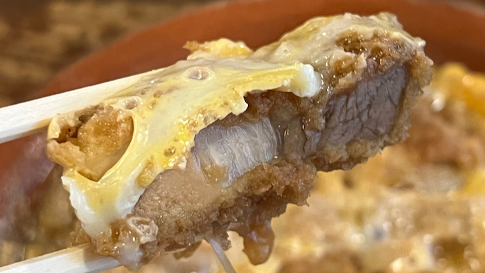 ▲ アツアツで衣にも歯ごたえが残るカツ煮。