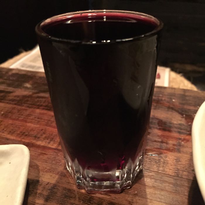▲ 赤ワインをお願いしたら、素晴らしく表面張力で登場。
