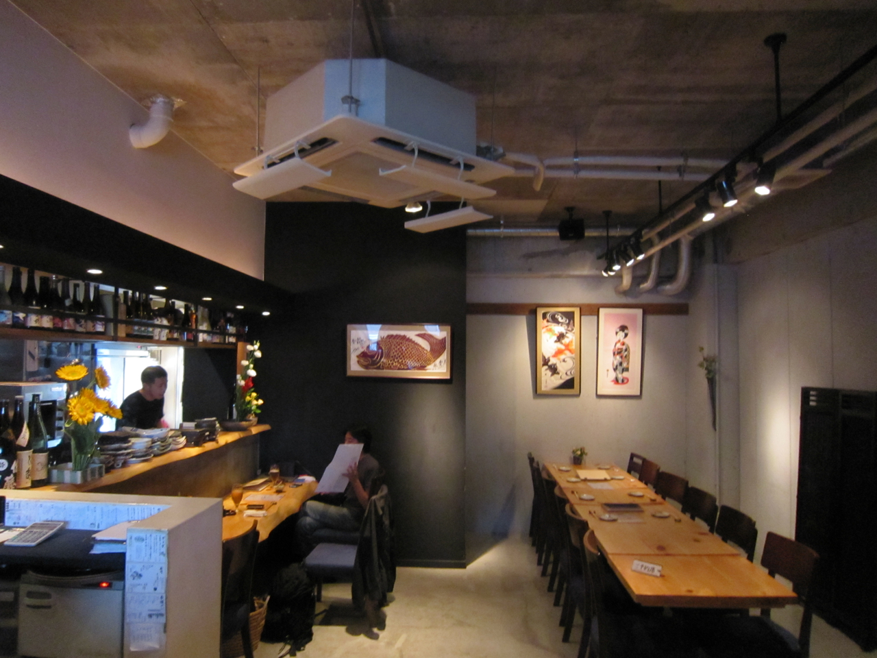夕方の店内の様子。左カウンターにいるのが大将で、座っているのがどんぴさん。