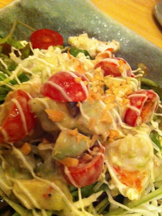 最初に出してもらったサラダ。これがメチャクチャ美味い!エビとアボカドとのミックス具合が最高でした。