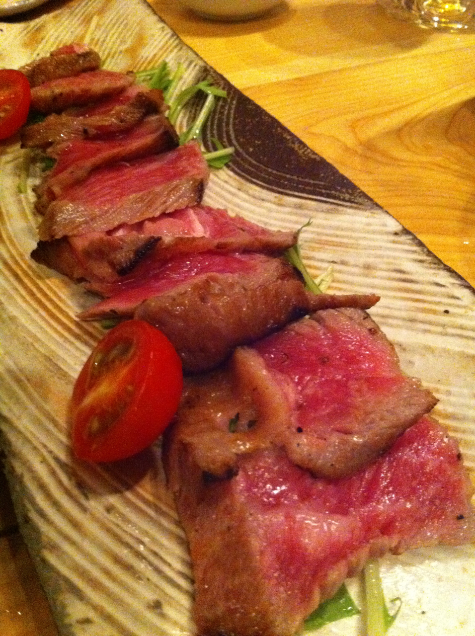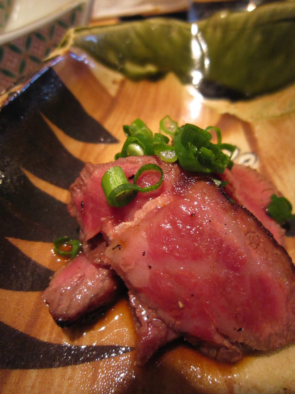 そしてドーン!きました、竹蔵名物牛のタタキ。これ食べたくて夢に見るほど。嬉しかった〜。