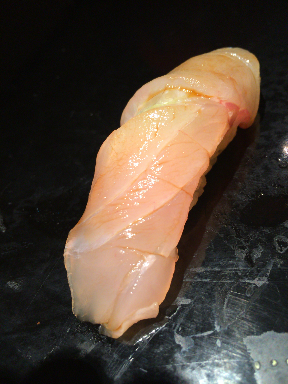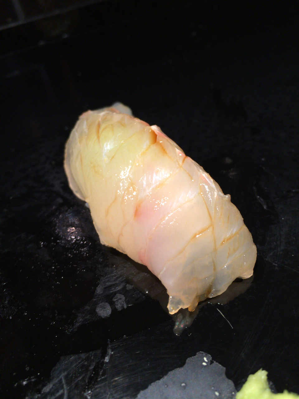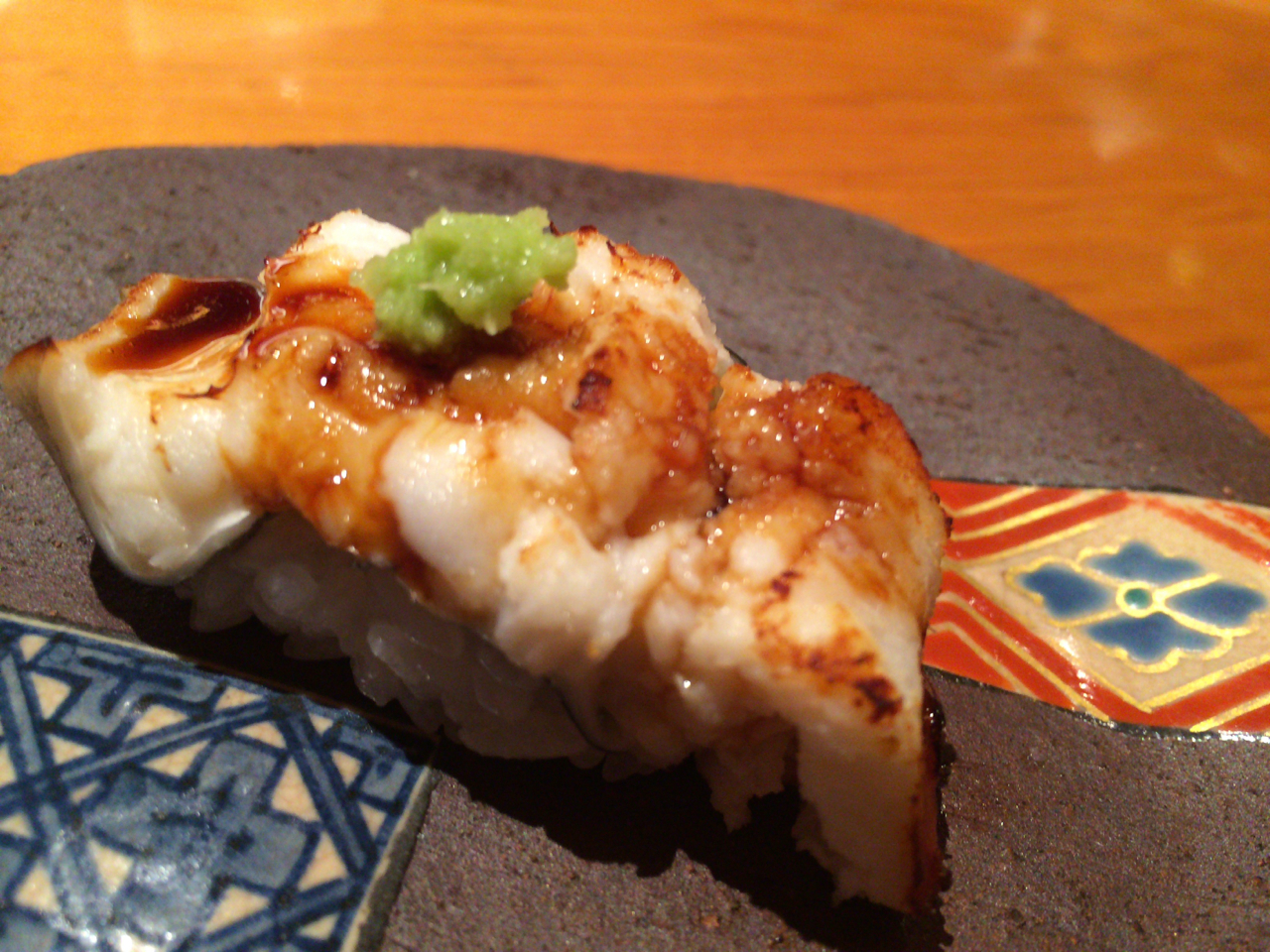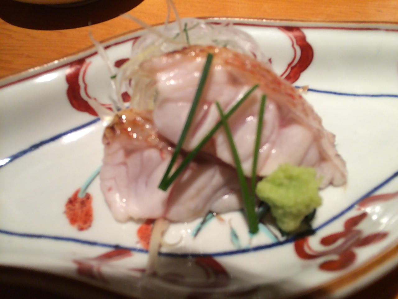 痛恨のピンボケ(笑)。ノドグロの炙り。脂身が多いノドグロは炙ったほうが美味しいとのこと。