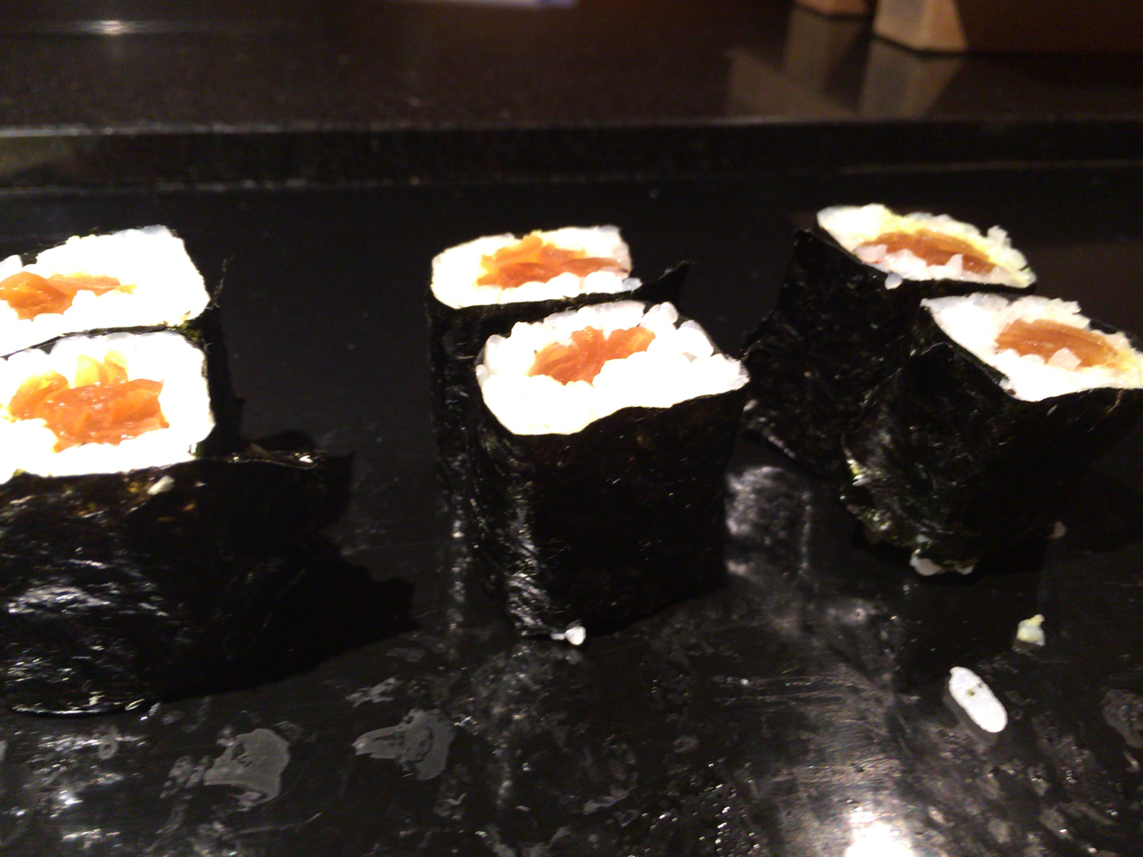 ダウンライトを浴びてネタが輝いて見える。