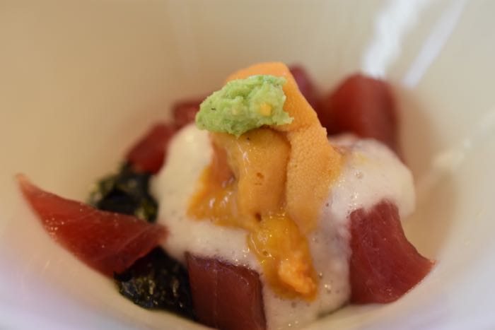 ▲ ウニとヅケととろろ。下にシャリが入っている。