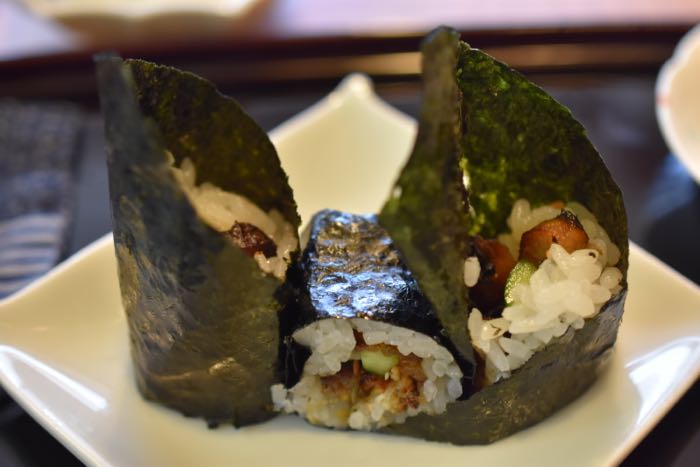 ▲ 鰻とキュウリ、うなきゅう巻き。パリッパリの鰻が再登場。これも絶品。たまらん。