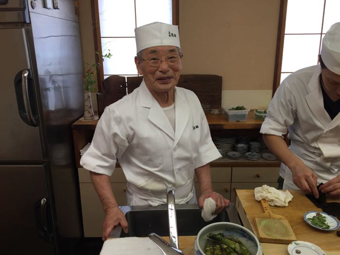 まったく偉ぶらない、82歳の森田一夫さん。本当に柔らかく気さくな物腰だが、包丁さばきとお寿司を握る姿はまるで高性能のマシーンのよう。