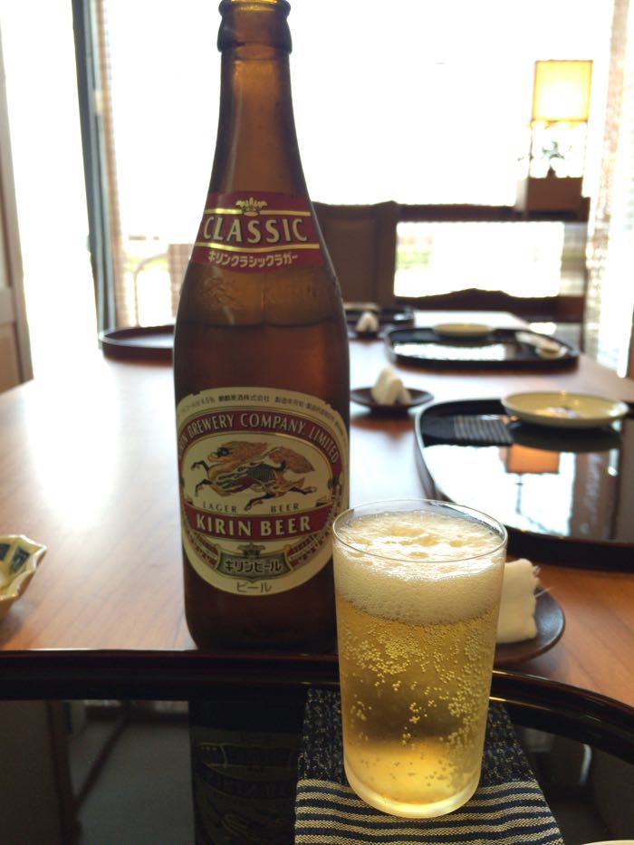▲ まずはキリンラガーで一人祝杯を上げる。
