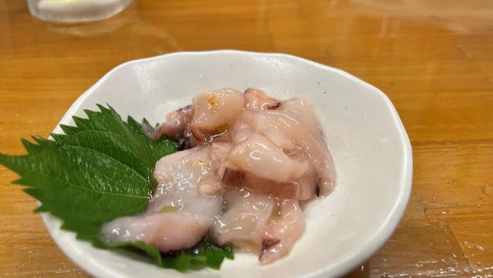 1軒目で定食を食べたので結構おなかがいっぱいで、のんびり飲みつつ軽くつまんだ感じ。