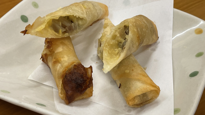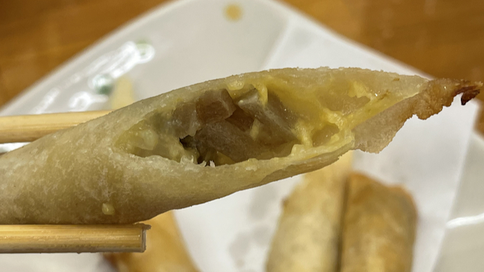 ▲ 確かに春巻きの中に辛子レンコンを刻んだものが入ってる。