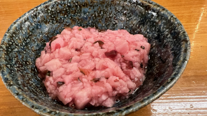 店員さんに確認したところ、柴漬と山芋を刻んだもの。