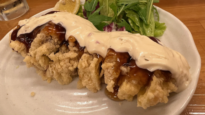 ▲ 同じくおすすめメニューのチキン南蛮を頼んだら、巨大なものが出てきてビックリ!