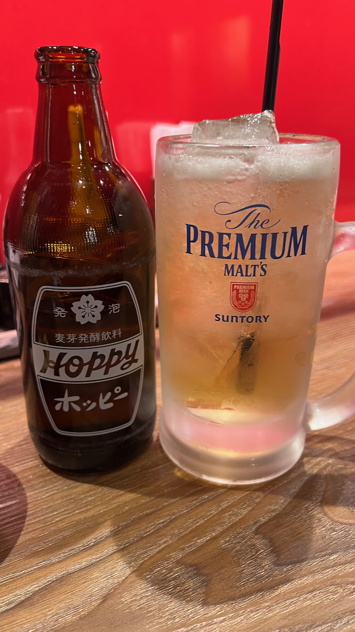 ▲ カウンター席に案内してもらい、まずはホッピーで乾杯。