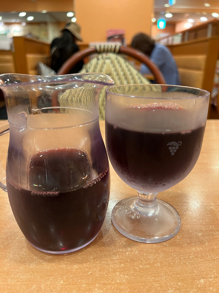 ▲ デカンタ赤ワイン、250mlで200円(税込)という凄いコスパ。