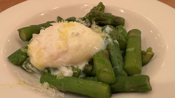 ▲ 季節限定メニュー、アスパラガスの温サラダ。
