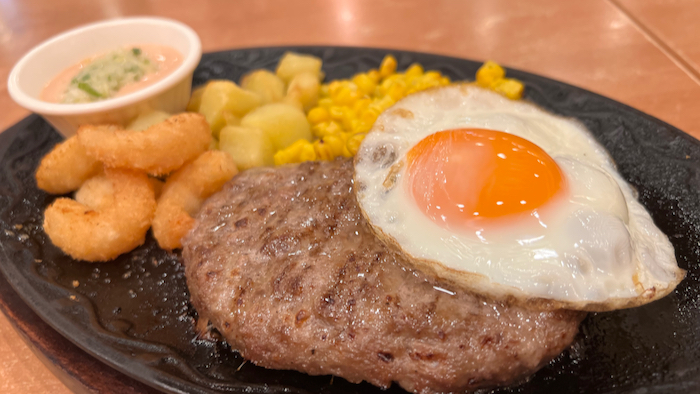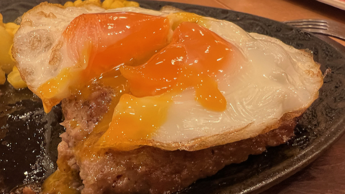 ▲ 卵を崩してとろりとした卵黄とハンバーグをいただくのが最高。