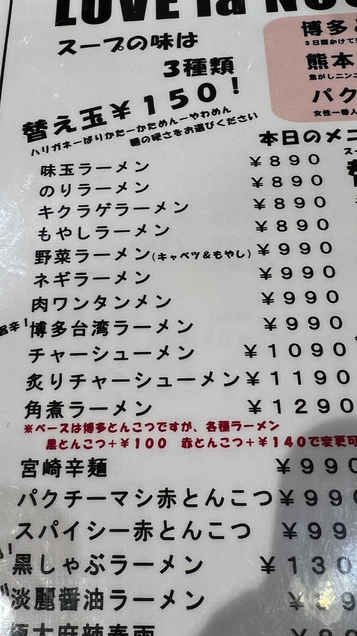 ▲ メニューに博多台湾ラーメンを発見して試してみたくなった。