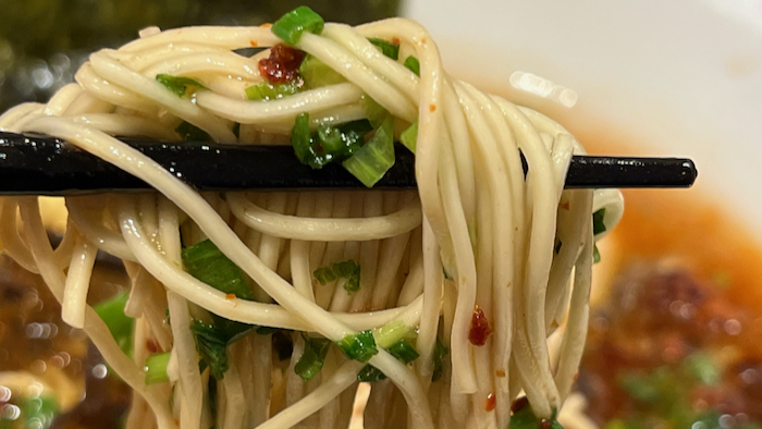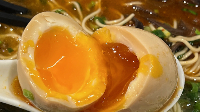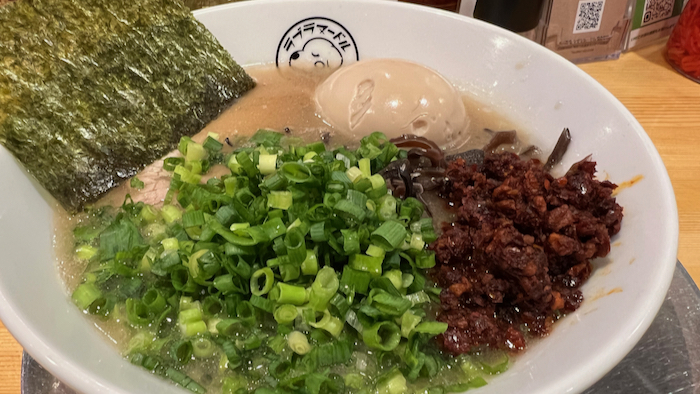 ▲ 博多台湾ラーメンに味玉とネギをトッピング。