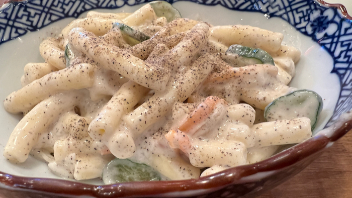 ▲ ブラックペッパーがたっぷり掛かったマカロニサラダ。
