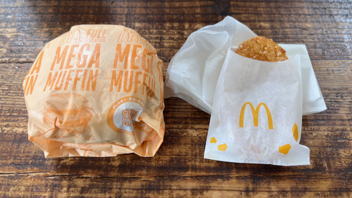 多分メガマフィンはソーセージ2枚とベーコン、さらにチーズも入っているのでケチャップが強くなりすぎずバランスが良いんだと思う。