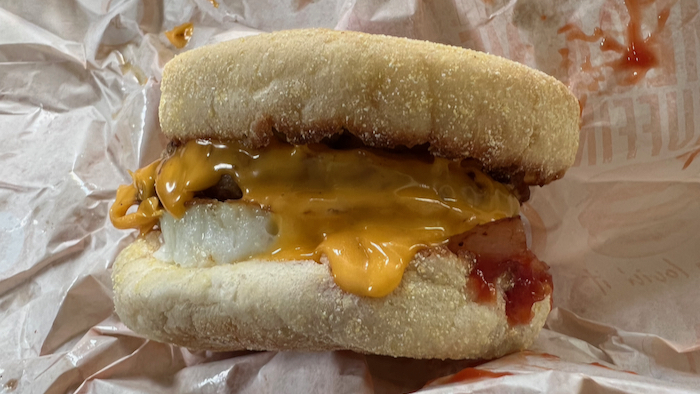▲ 面白いのがメガマフィンのケチャップは美味しく感じるのに、レギュラーメニューのエグチ(エッグチーズバーガー)のケチャップは美味しく感じないこと。