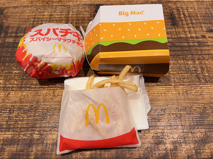 スパイシーマックチキンとビッグマック、それにポテトのSサイズ。