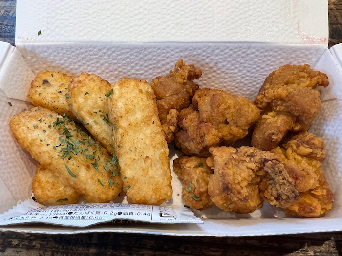▲ クーポン利用で竜田ミックスを無料で貰った。