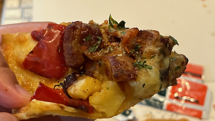 チェダーチーズが振ってあってサラミやベーコンなどの風味と良く合う。