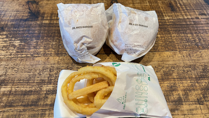 今日はテリヤキチキンバーガー、スパイシーモスチーズバーガー、そしてオニオン & ポテトを購入。