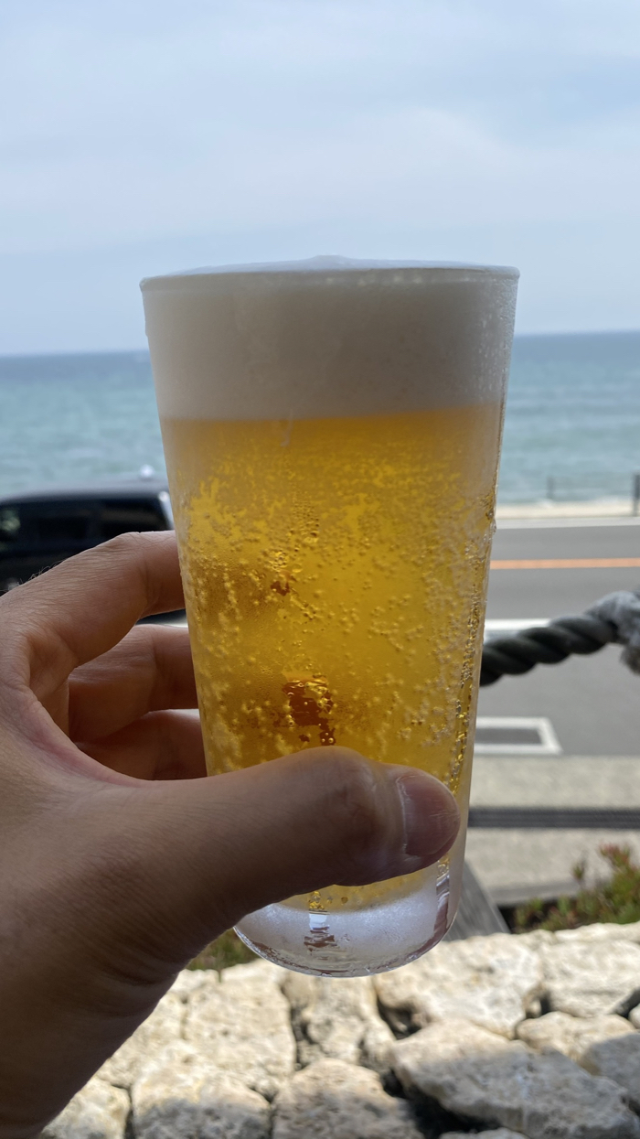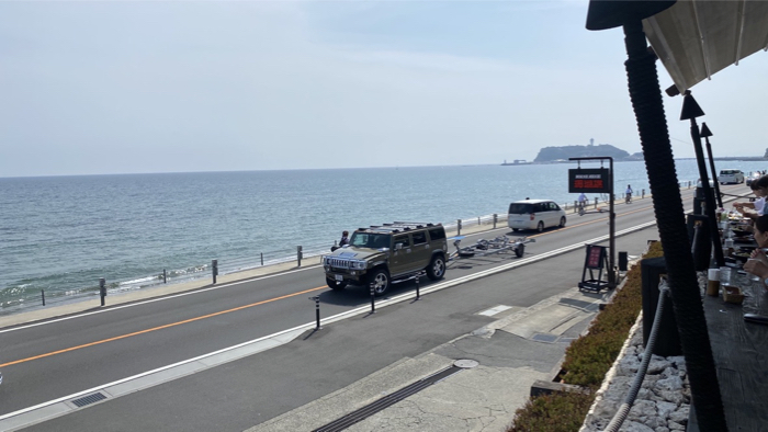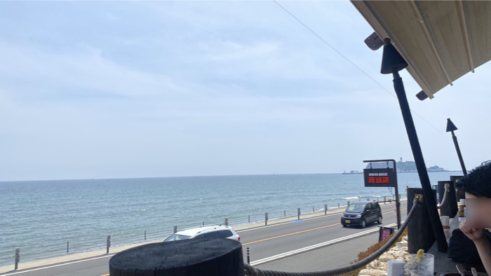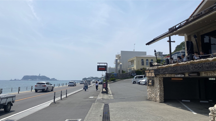 目の前は国道134号と広い海、そして向こうに江の島が見える。