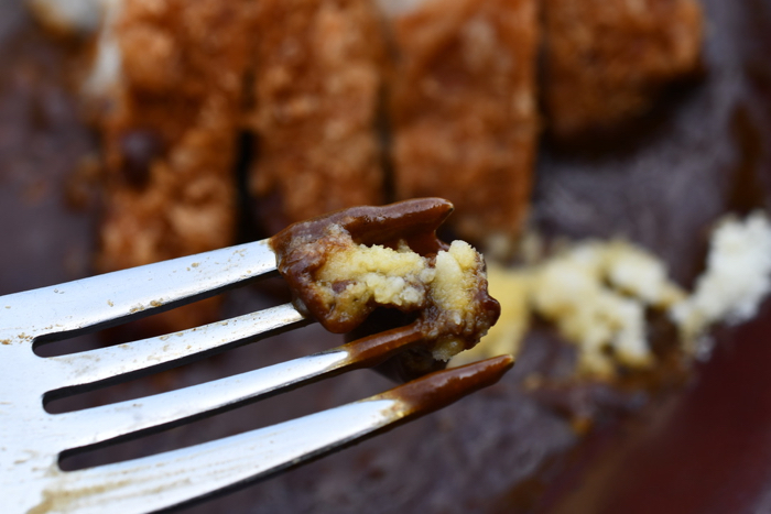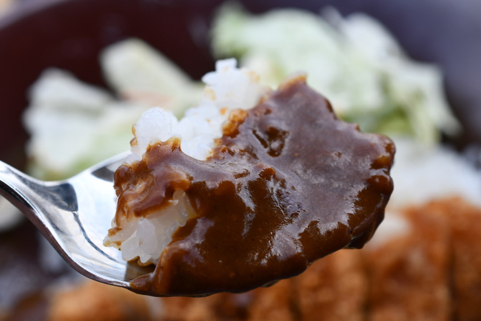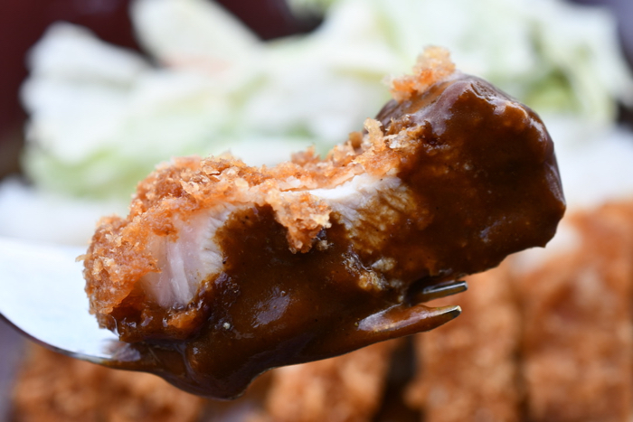 ▲ カレーソースと一緒にいただくロースカツ。