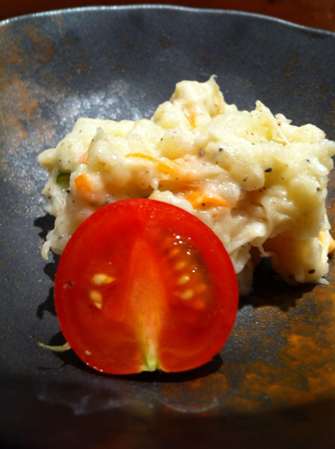 そしてナベさん劇場の開幕である。まずはポテトサラダからスタート。ジャガイモの潰し具合が個人的にはとても好きな感じ。酒飲み用ですな。