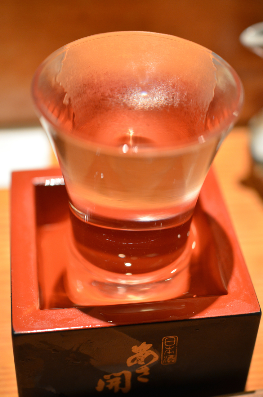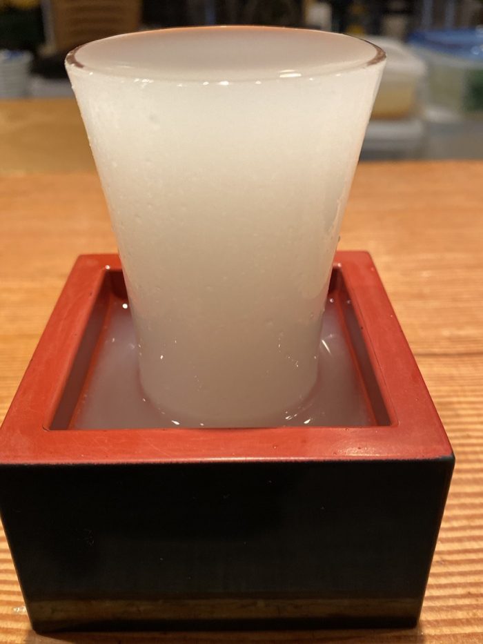 ▲ ここで冷酒をいただく。長野の佐久のお酒。