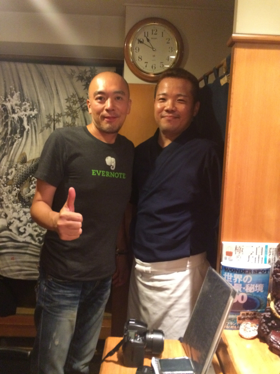 コースに巻物を追加して、ビール1杯と日本酒を3つ。これで1万円でお釣りが来るんだから、コスト・パフォーマンスは最高レベル。そして大将のナベさんは何とiPhoneユーザーになっていた!